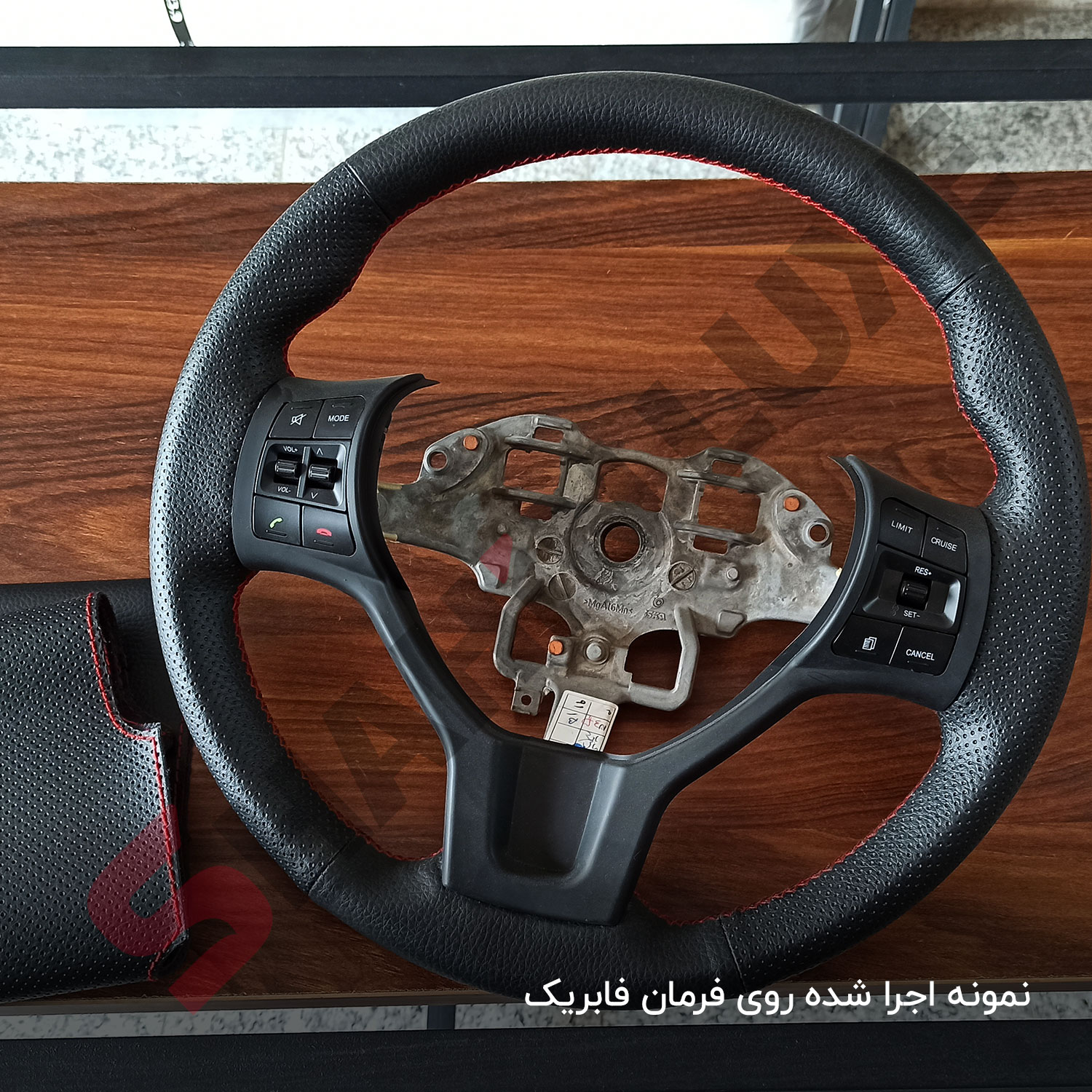 همانطور که میدانید فرم فرمان خودرو هر ماشینی با خودرو دیگر متفاوت است و در خودروهایی که به صورت فابریک کارخانه ای چرم دوزی شده است شاهد هستیم که در بخش های بازویی چرم به صورت کامل این بخش ها را گرفته و به زیر فلاپ رفته است. در واقع چرم دوخته شده روی این فرمان ها یک چرم ساده با عرض مشخص نیست بلکه در بخش هایی عرض بیشتری داشته که میتواند به خوبی بازویی فرمان را پوشش داده و ظاهری شیک داشته باشد.