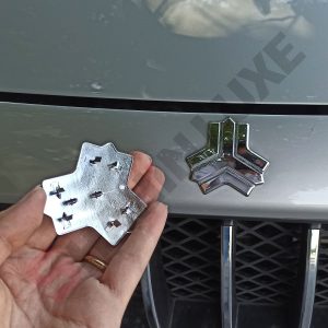 این محصول دقیقا مشابه محصولی است که در خط تولید سایپا مورد استفاده قرار میگیرد. این آرم از جنس پلاستیک تولید شده است که روی آن آبکاری دقیق و بی عیب و نقصی ایجاد شده است. در پشت آرم چسب آماده نصب و استاندارد خودورسازی قرار گرفته که به خوبی روی بدنه خودرو مینشیند.