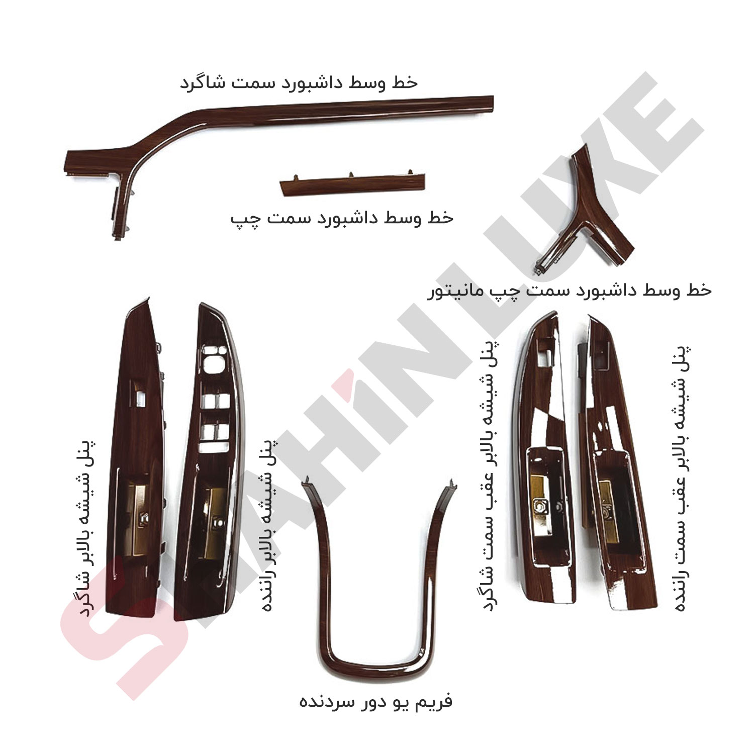 چوب سوخته (CVT) – پنل کلیدهای شیشه بالابر راننده ,چوب سوخته (CVT) – پنل کلیدهای شیشه بالابر شاگرد ,چوب سوخته (CVT) – پنل کلیدهای شیشه بالابر عقب پشت سر راننده ,چوب سوخته (CVT) – پنل کلیدهای شیشه بالابر عقب پشت سر شاگرد ,چوب سوخته (CVT) – خط وسط داشبورد سمت شاگرد ,چوب سوخته (CVT) – خط وسط داشبورد سمت چپ مانیتور ,چوب سوخته (CVT) – خط وسط داشبورد سمت چپ داشبورد ,چوب سوخته (CVT) – فریم U شکل دور سردنده |